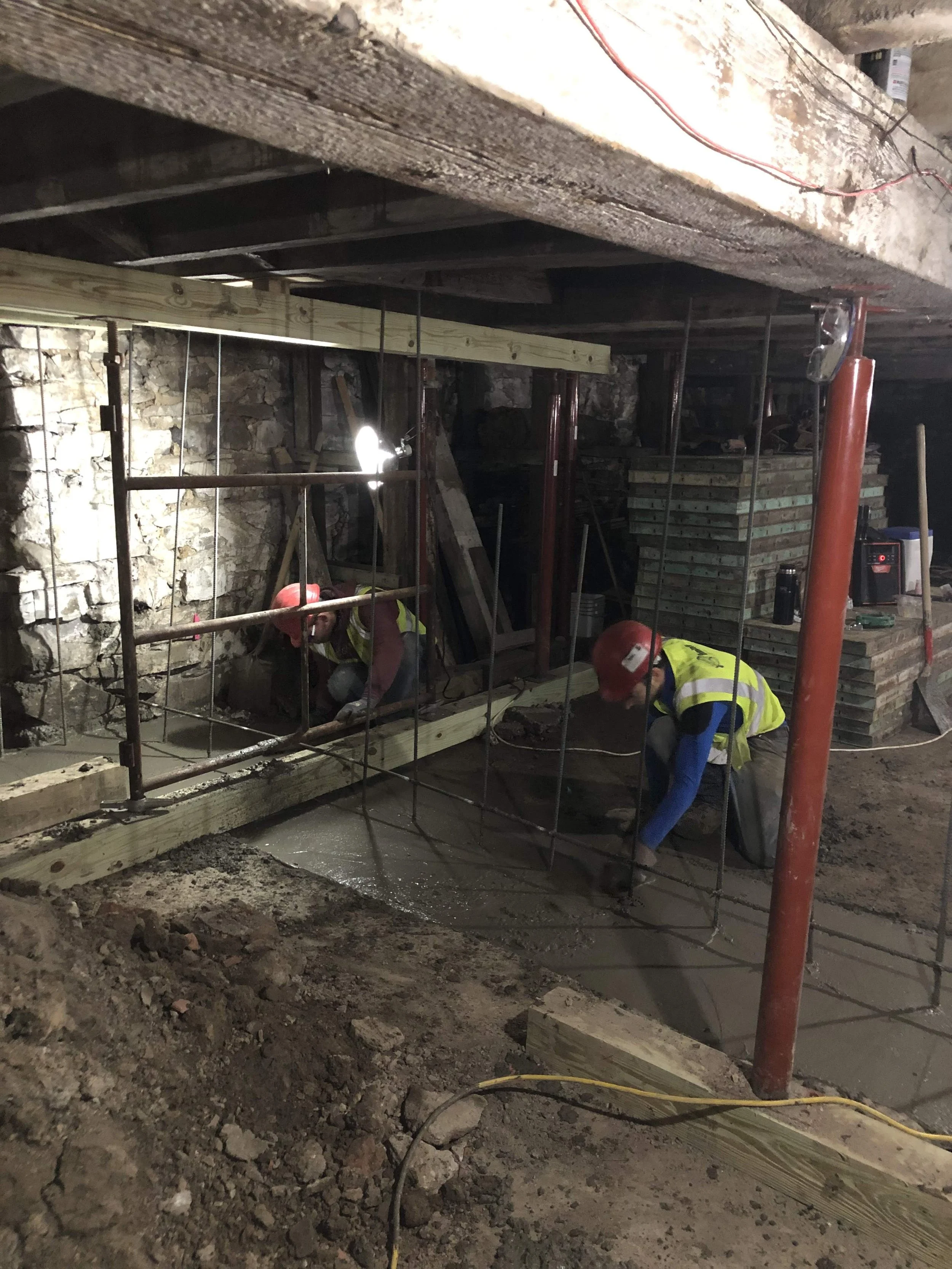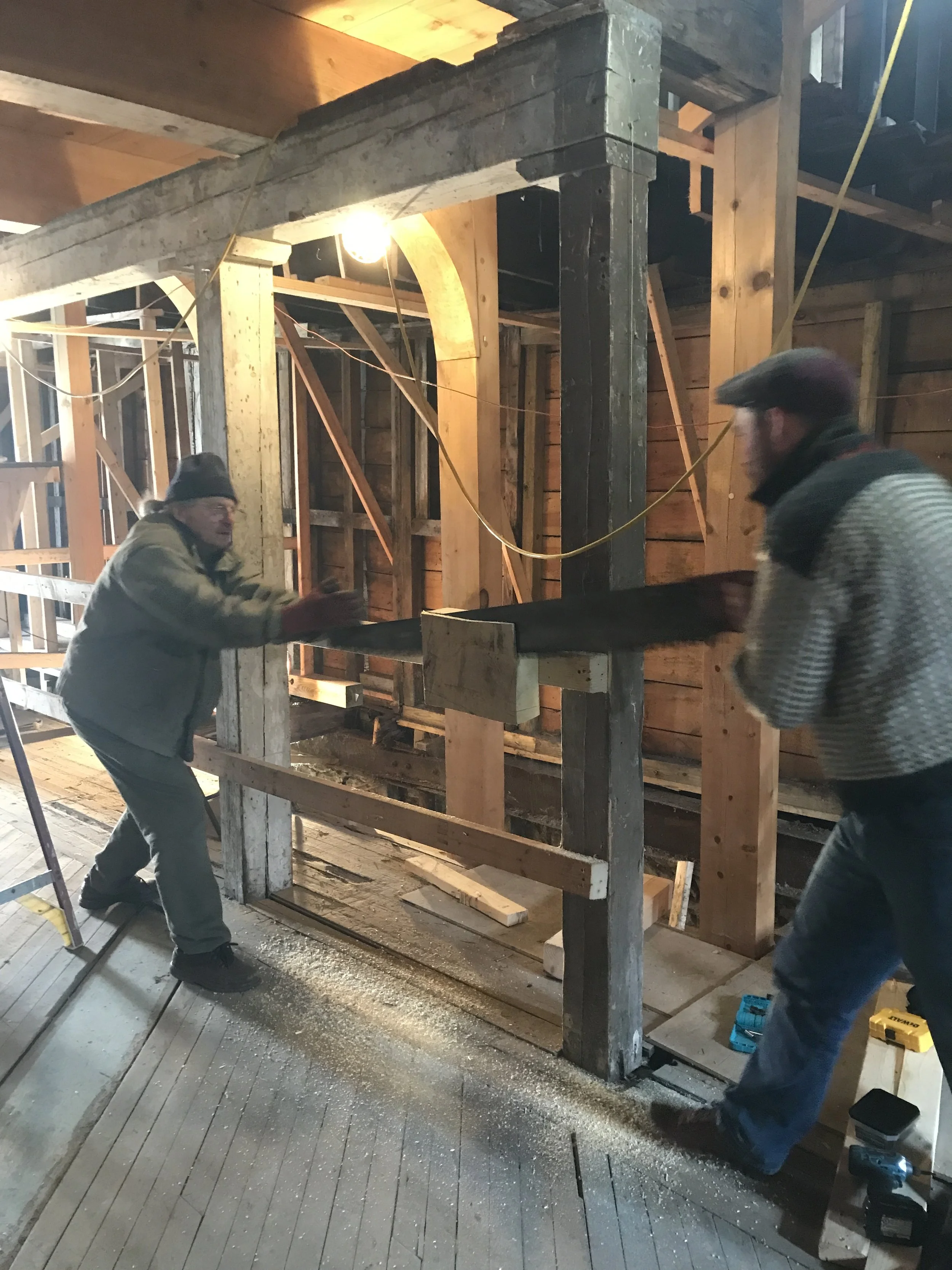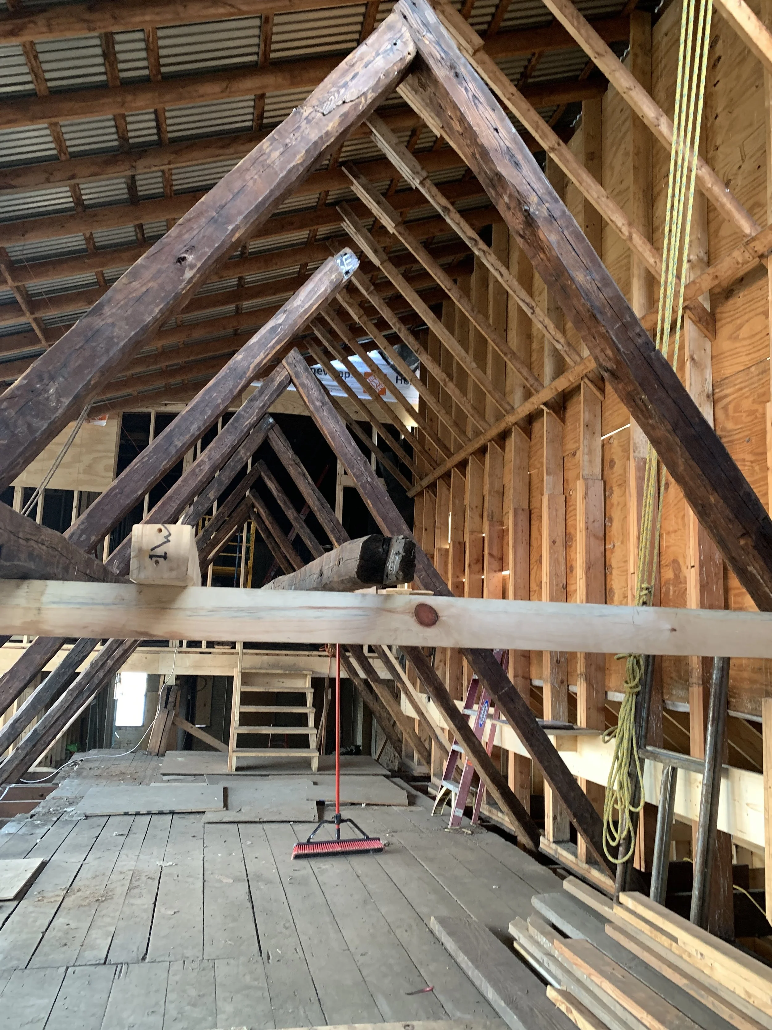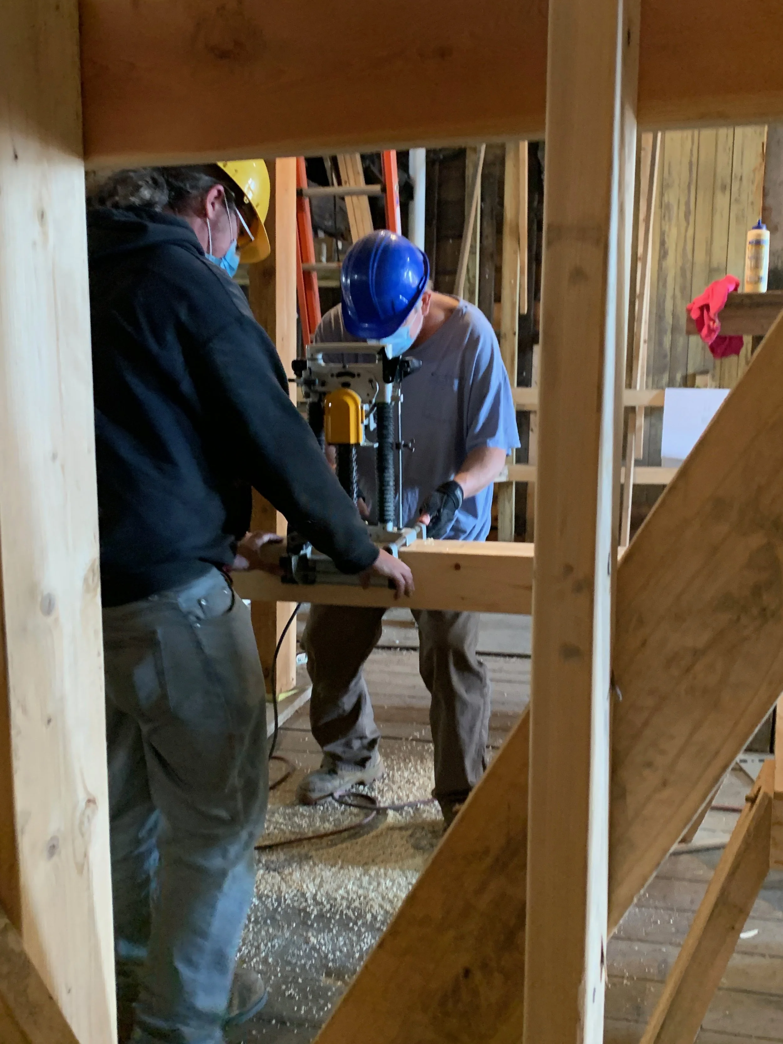 Once the plan was formed, HAF immediately began fundraising and in 2016 received its first grant to begin stabilization work on the Dutch House. The Consulate of the Kingdom of the Netherlands provided a grant to put a decorative scrim on the front of the building depicting what it would look like when completed to raise awareness for the project. It worked! The NYS Office of Parks, Recreation and Historic Preservation provided a grant to reinstall two new foundation walls (they had been removed in an earlier expansion), and restore the H-bent timber framing structural system. This phase was completed in 2021.
