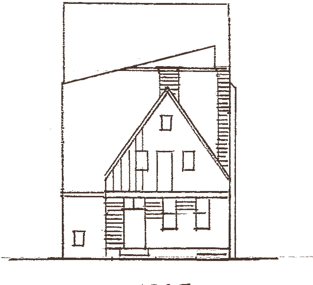 In 1783, a reference was made to the house needing repairs, specifically, the kitchen chimney that smoked and had caught fire twice. Radliff was ordered to stop using it. This was presumable the side jambless fireplace on the west wall. This technology was an antiquated building technique brought over by the Dutch in the early 1600s. Jambless fireplaces were essentially a fire inside on a hearth with a hood directly above to direct smoke. They had no sides, which would allow heat to radiate in all directions, which was not an efficient way to heat a home. This type of feature did not last long in America and was somewhat quickly abandoned. They only appeared in urban homes, as they were a way to heat the front of the house while not blocking light let in by the front windows. This fireplace was converted to a stair case at an unknown date.