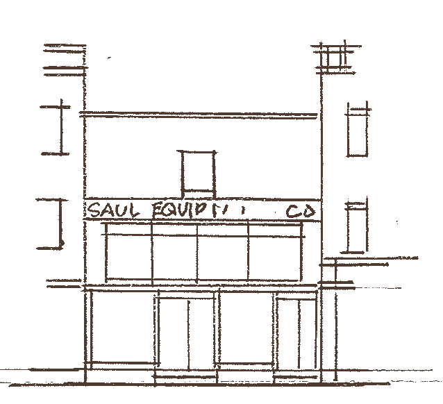 48 Hudson was purchased by Isadore and Eva Saul in 1935. They opened Saul’s Equipment Supply in 1937. Their son, Bernard, and later daughter-in-law, Ella, Saul’s Equipment Supply. The business would be on Hudson Avenue from 1937 through 1996. Under the Saul’s ownership, the building received another facelift in 1937 with the addition of the false front facade that modernized the building and hid the gable from the street. The second floor had a band of plate glass display windows added. The front wall was clad with Insel-bric, an asphalt shingle that was designed to imitate the appearance of brick. In the 1950s, the building was to be combined with 50 Hudson, but the addition never happened. The boiler room was turned into a much larger garage in 1952. In the 1960s, the facade was again redone, recessing the first floor storefront windows to be flush with the rest of the facade.