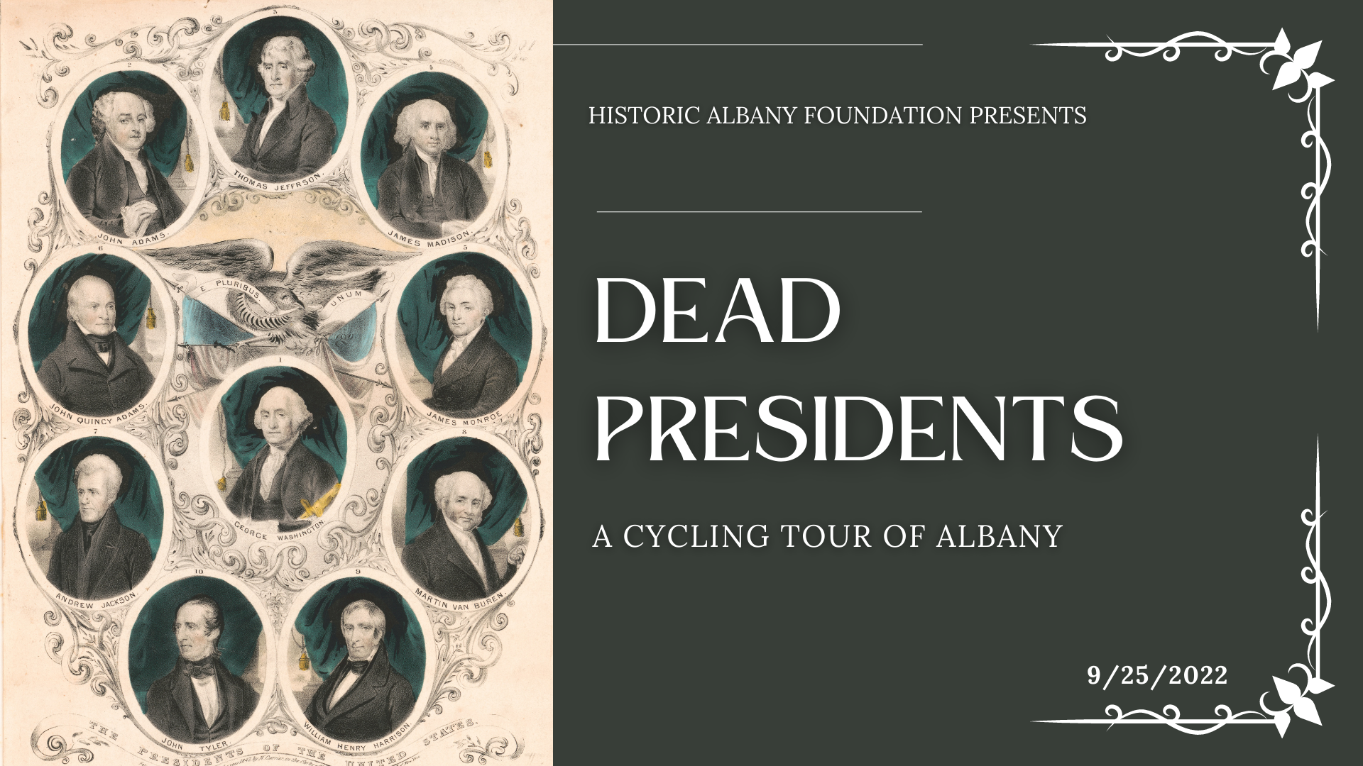 Take a leisurely fall cycle through downtown Albany and learn about the many presidents and their connections/visits to the State Capital. Matt Malette (Historic Albany Foundation's Board President) and Tara Kennedy (Board Member) will be your intrepid guides on this president-packed tour with visit to Washington Armory, Renaissance Albany, & The Capitol to name a few. Stops will explore stories of Washington, Lincoln, John F Kennedy, Harry Truman, and more.