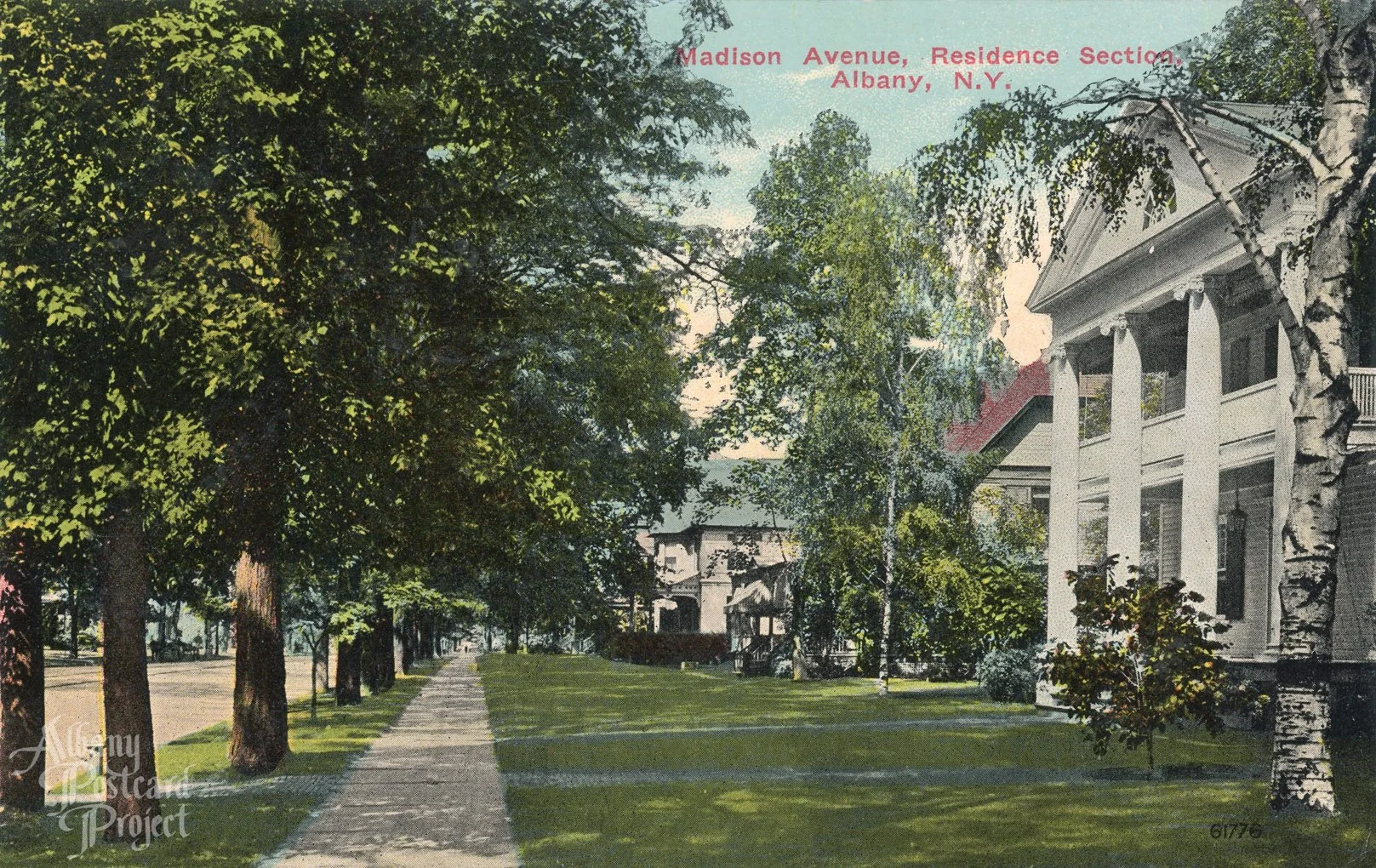 Madison Ave, Gibbons Hall, Moran Hall, College of St. Rose, Residential Homes. Image courtesy of Albany Postcard Project, https://www.albanypostcardproject.com