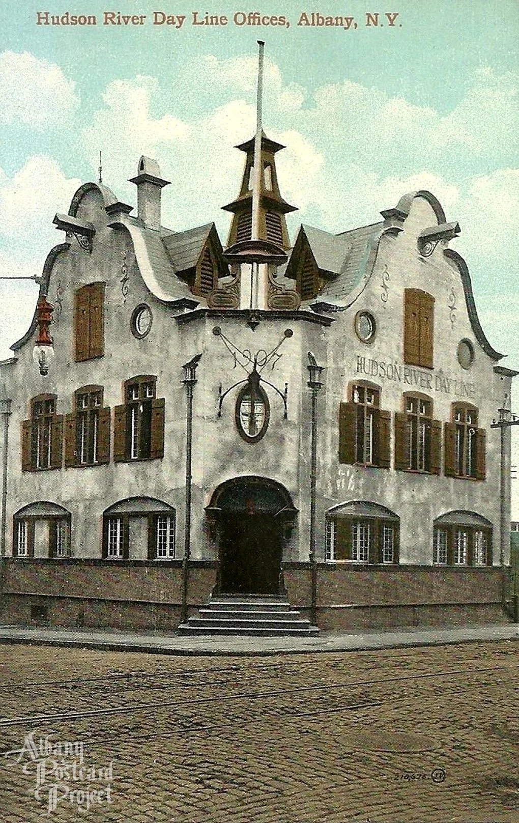 View the Historic American Buildings Survey (Library of Congress) drawings from the Hudson River Day Line building survey (compiled after 1933). Read the 2019 Times Union article about the building going up for sale, which includes several interior photos.
