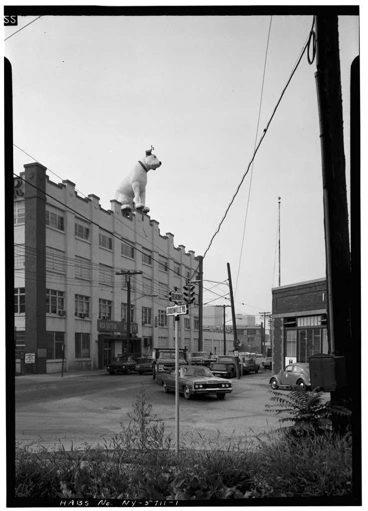 991 Broadway was built in 1907 for the manufacturing operations of the American Gas Meter Company. The building was sold to RTA, distributors of RCA electrical appliances, in 1958. It was in that year that Nipper the dog, the mascot of RCA, was placed atop the roof of 991 Broadway.
