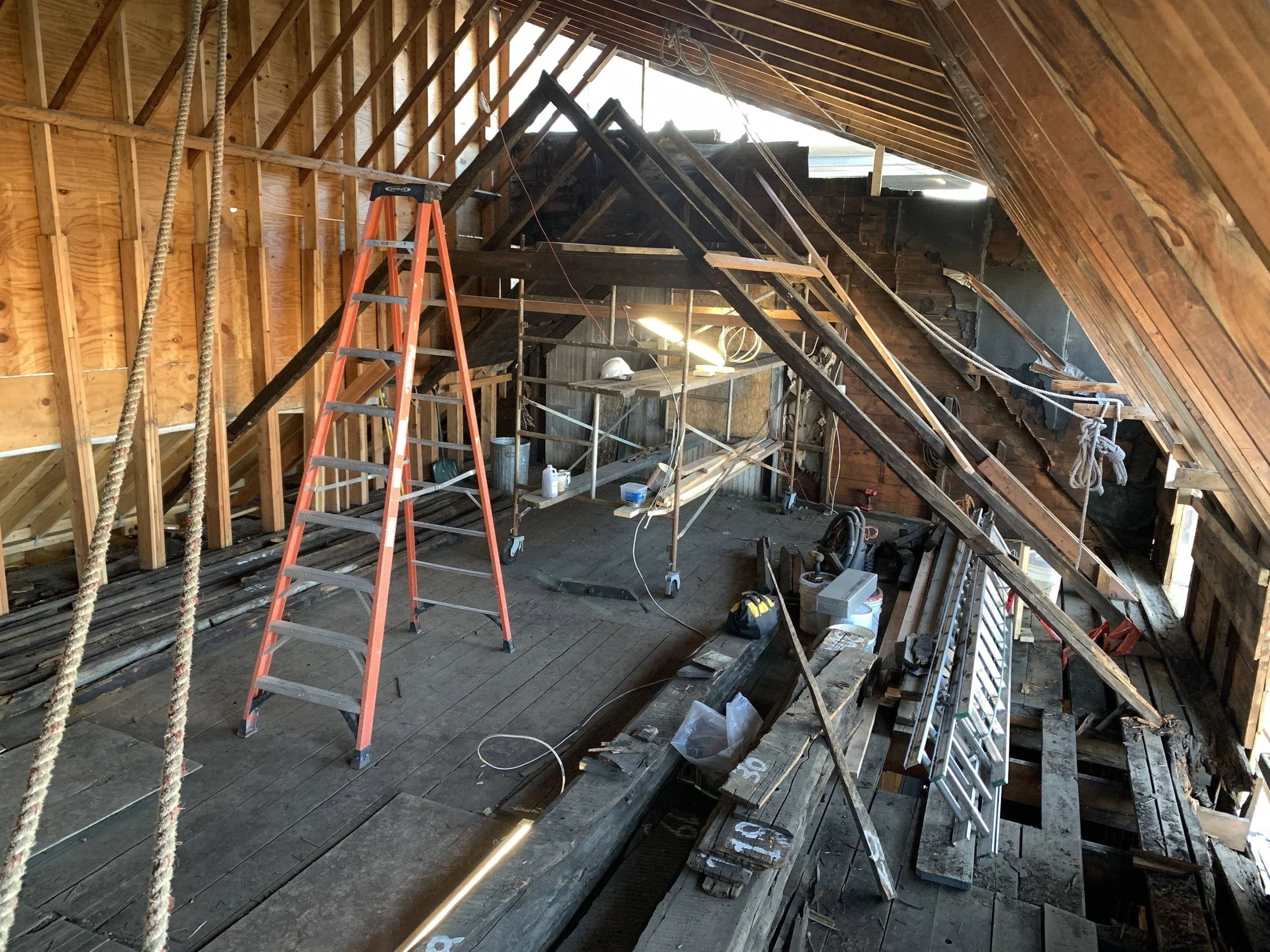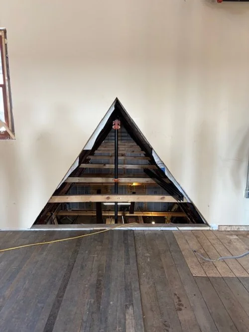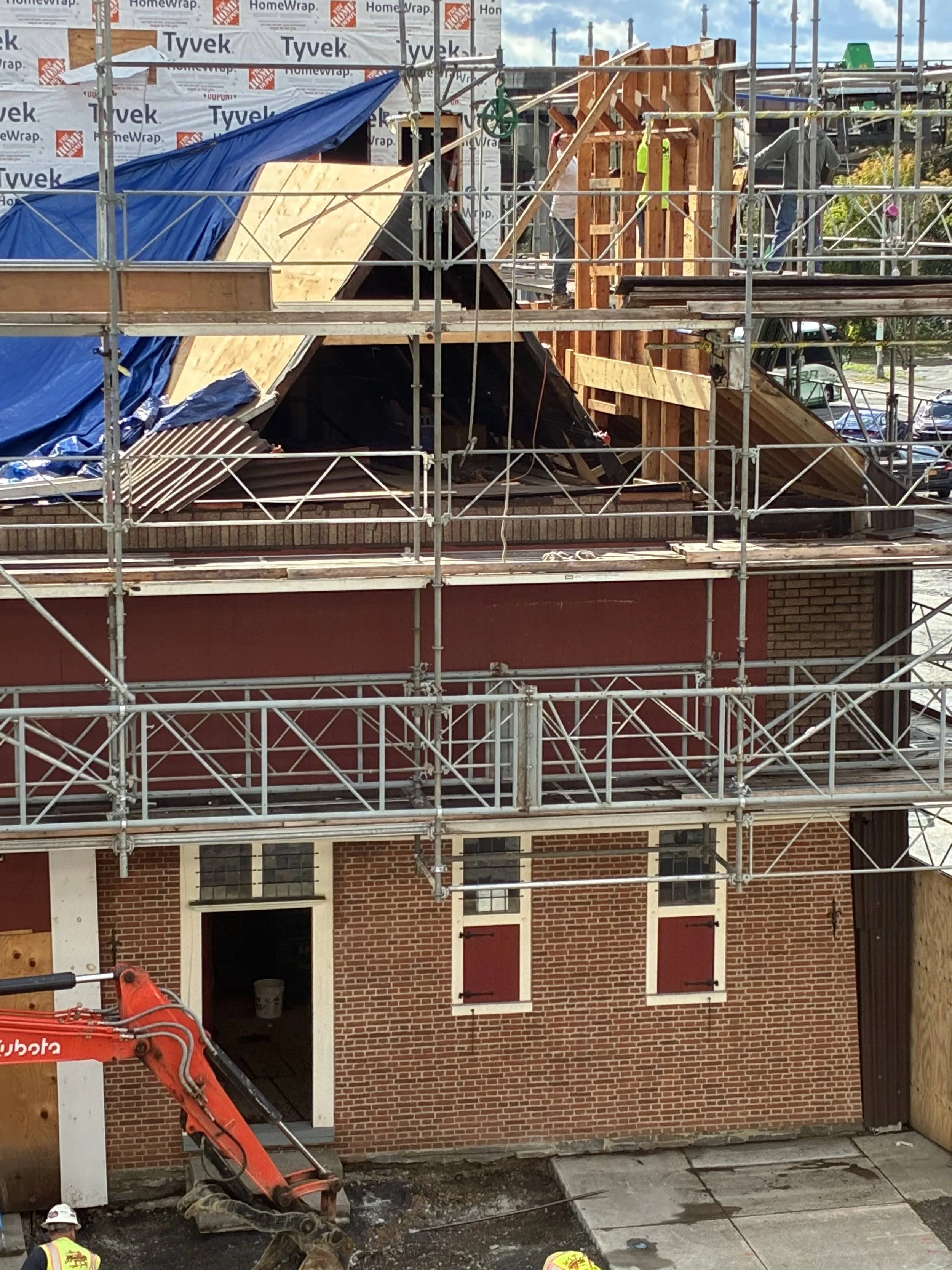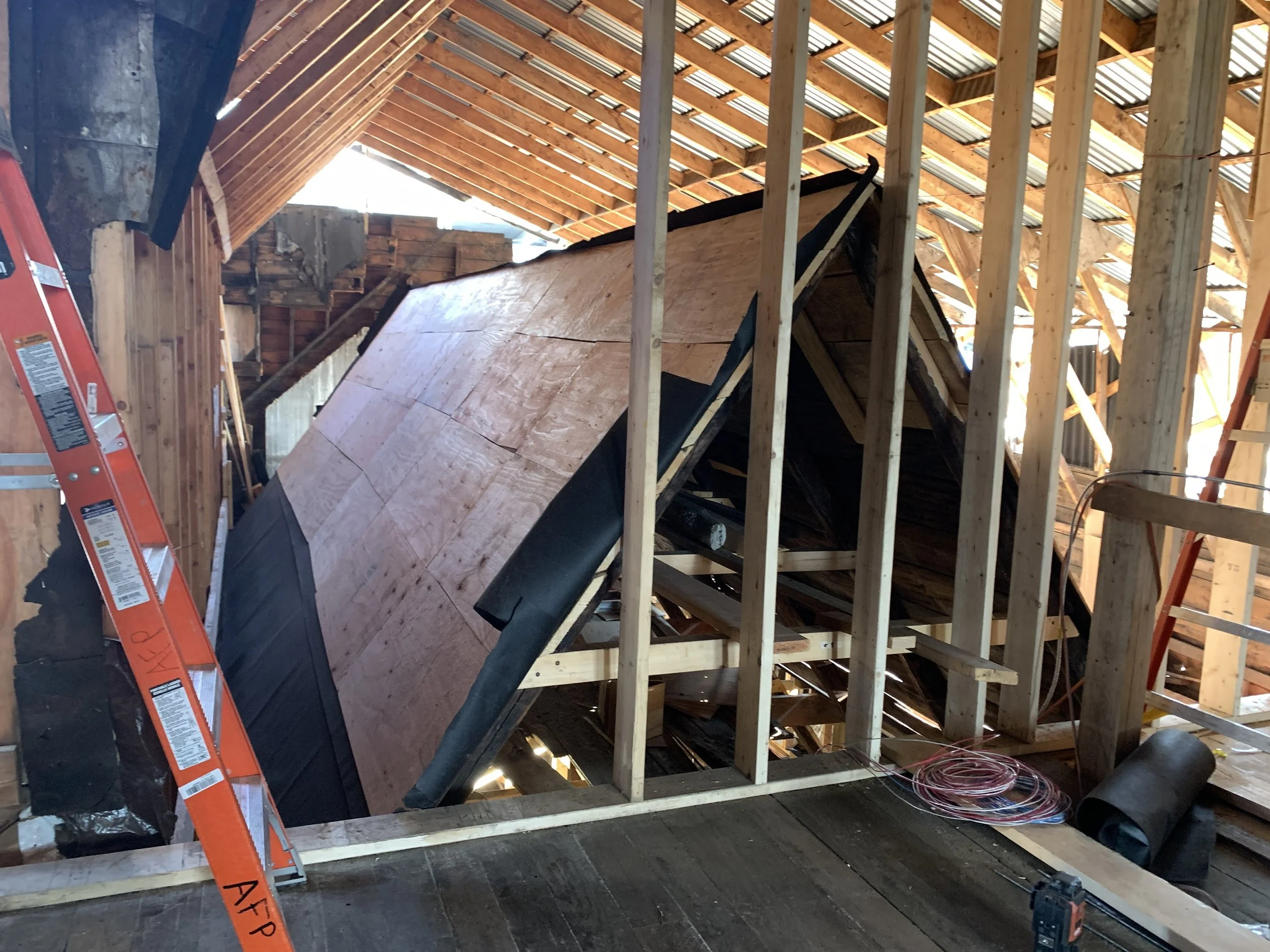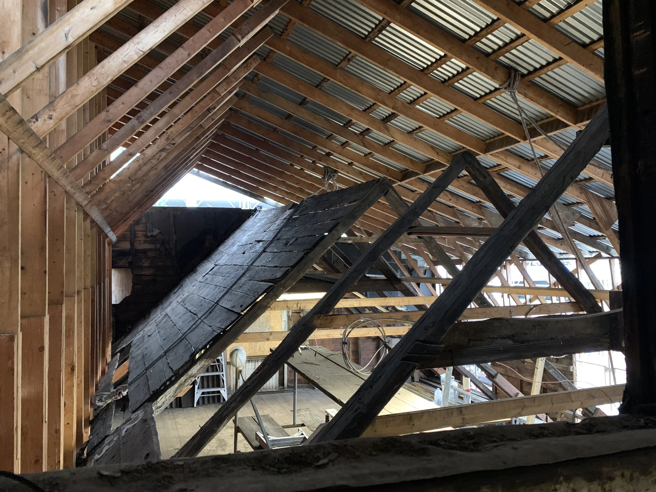 Ten years later to date, the first two phases of stabilization are complete and we are now beginning to restore the building, the third and fourth of the initially planned phases. Throughout the remainder of 2023, the exterior of the House portion of the building will begin to transform back to its original appearance. The east and north (front) facades will be carefully recreated with new brick, custom crafted Dutch doors, leaded windows, weatherboards, and hardware. The west wall, which is exceptionally intact, will be carefully preserved and covered on the exterior so that it is protected, but appears period appropriate instead of the current, and thankfully temporary, asphalt cladding. The west wall will remain fully visible from the inside.